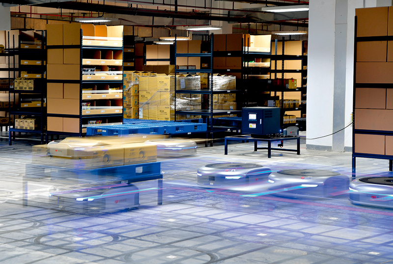 河南保稅物流中心,分揀機器人進(jìn)行包裹分揀工作(2019年1月14日攝) 李嘉南攝