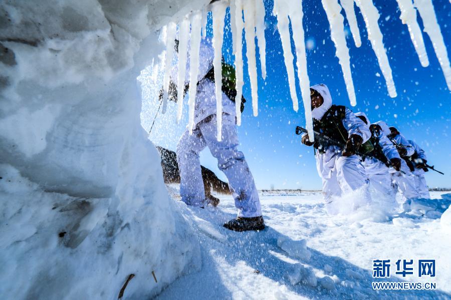 東極哨所組織邊境守防演練,官兵們?cè)谘策墸?1月4日攝)。新華社發(fā)(李寶成 攝)