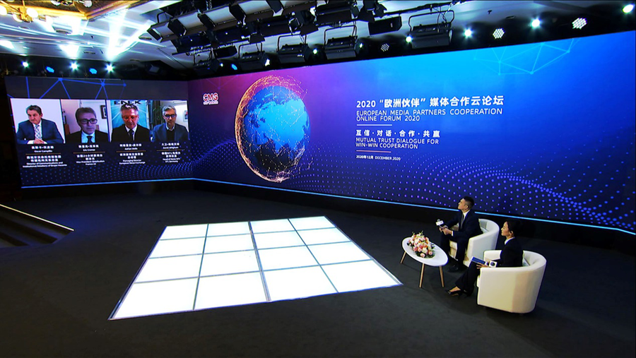 12月10日,中央廣播電視總臺以視頻連線的方式舉辦2020“歐洲伙伴”媒體合作云論壇。中宣部副部長、中央廣播電視總臺臺長、總編輯慎海雄出席并發(fā)表致辭,強調(diào)堅持多邊主義,加強對話交流,構(gòu)建中歐媒體伙伴關(guān)系。中央廣播電視總臺相關(guān)代表與來自歐洲地區(qū)16個國家25家媒體機構(gòu)的28名與會代表圍繞“互信·對話·合作·共贏”主題,相聚云端展開對話,共同發(fā)布《加強媒體合作聯(lián)合聲明》,積極推動中歐媒體加強合作、同舟共濟(jì)、團(tuán)結(jié)抗疫,提振國際社會信心。