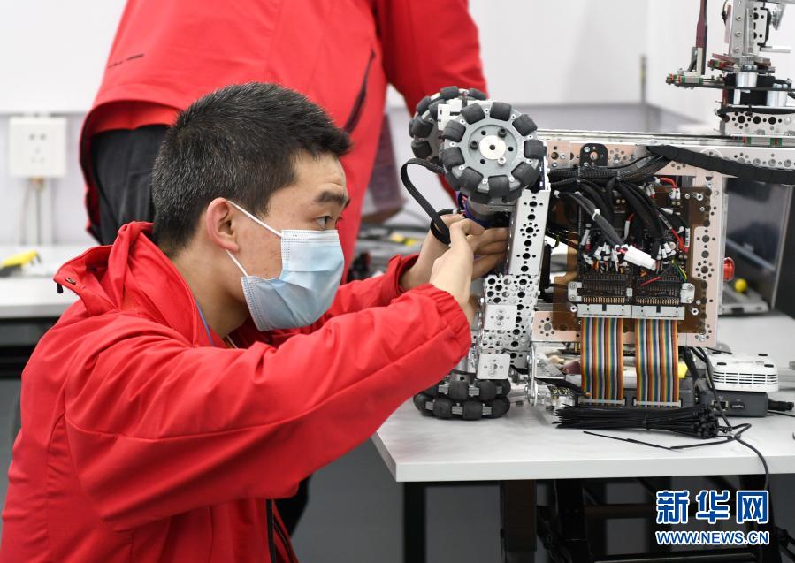12月10日,選手在移動(dòng)機(jī)器人項(xiàng)目比賽中調(diào)試機(jī)器人。新華社記者 盧漢欣 攝