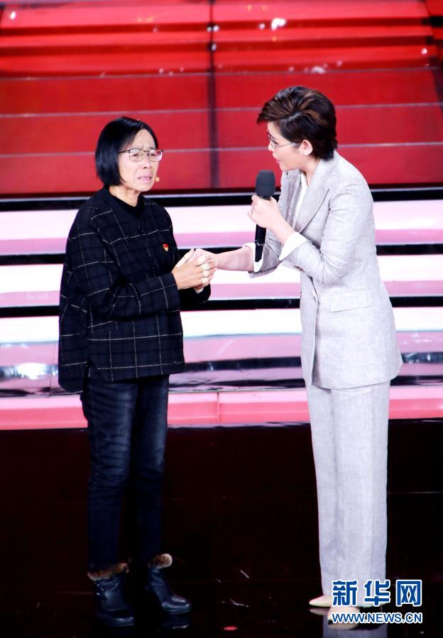 張桂梅(左)在“時代楷模”發(fā)布儀式上與主持人交流(12月7日攝)。新華社記者 潘旭 攝