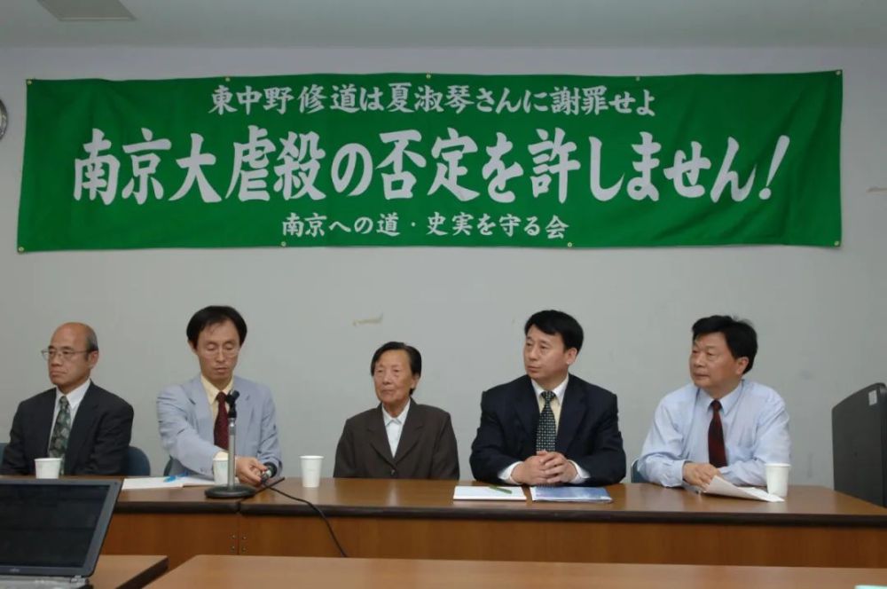 ↑2019年12月3日,南京大屠殺幸存者葛道榮(前排左一)、夏淑琴(前排左二)、艾義英(前排右一)及新確認死難者周萬榮的女兒陶秀華(前排右二)在家祭活動現(xiàn)場。新華社記者 李博 攝