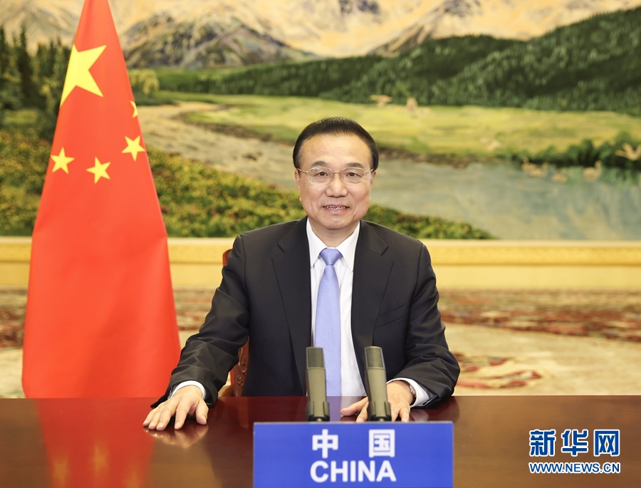12月14日,國務(wù)院總理李克強在《經(jīng)濟合作與發(fā)展組織公約》簽署60周年紀(jì)念活動上發(fā)表視頻致辭。 新華社記者 龐興雷 攝