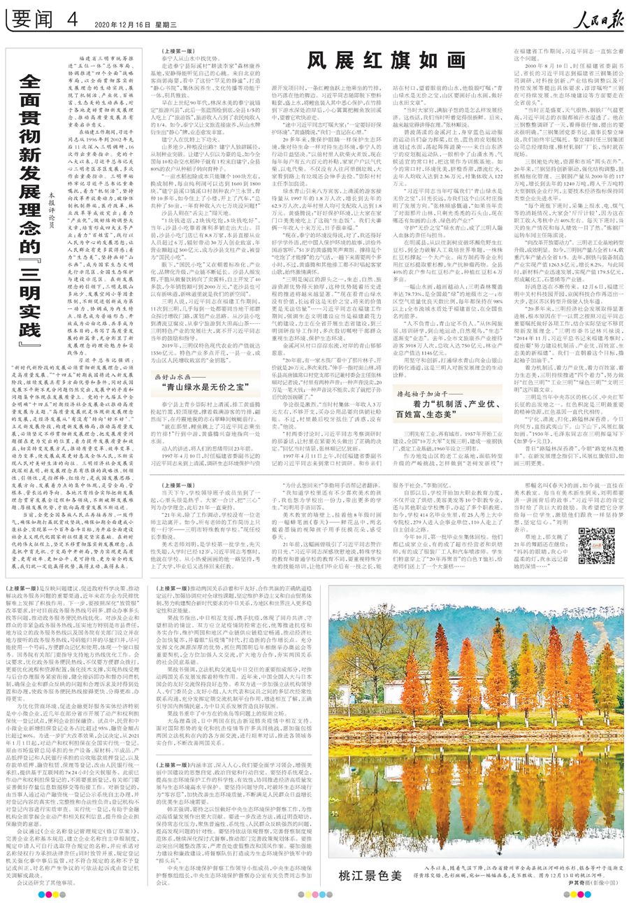 福建省三明市統(tǒng)籌推進(jìn)“五位一體”總體布局、協(xié)調(diào)推進(jìn)“四個(gè)全面”戰(zhàn)略布局,以全面貫徹落實(shí)新發(fā)展理念的生動實(shí)踐,展現(xiàn)了機(jī)制活、產(chǎn)業(yè)優(yōu)、百姓富、生態(tài)美的生動畫卷,對于各地更好貫徹新發(fā)展理念、推動高質(zhì)量發(fā)展具有重要啟示意義。今天人民日報(bào)推出多篇報(bào)道,刊發(fā)評論員文章,聚焦三明的探索和實(shí)踐。