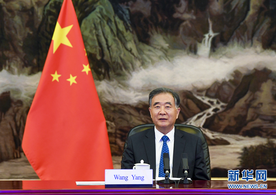 12月16日,全國政協(xié)主席汪洋在北京以視頻方式會(huì)見巴基斯坦參議院主席桑吉拉尼。新華社記者 高潔 攝