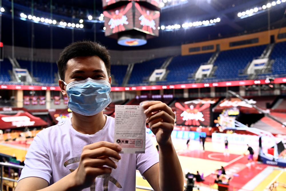 穿著白色短袖、戴著口罩的蘇柯帆,展示著自己的紙質(zhì)球票,滿眼興奮之情——“CBA聯(lián)賽復(fù)賽第一位入場觀眾”,就這樣被新華社記者的鏡頭記錄了下來。