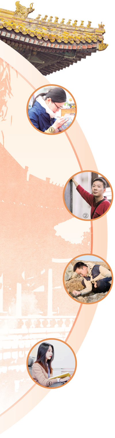 圖①:楊玉潔在修復瓷器。賴奐瑜攝 圖②:郁文韜在介紹碑文。尚 輝攝 圖③:吳偉參與明中都遺址考古發(fā)掘。寧 霄攝 圖④:康曉璐為制作APP查閱資料。朱 楷攝