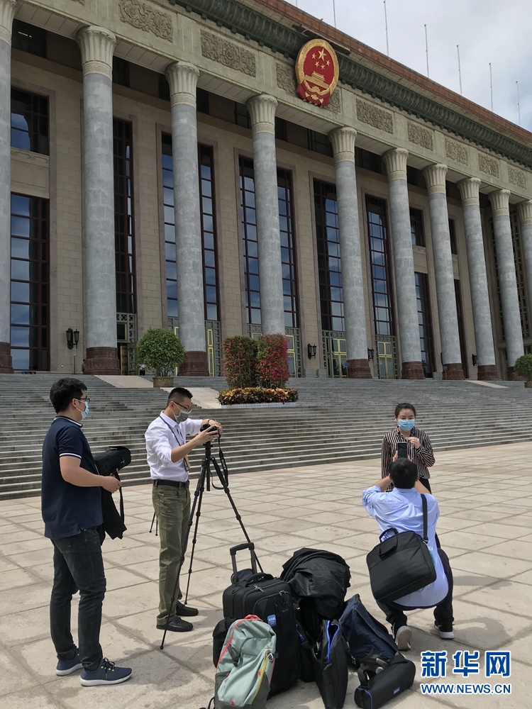 5月20日,全國政協(xié)十三屆三次會議召開新聞發(fā)布會。大會新聞發(fā)言人郭衛(wèi)民向中外媒體介紹本次大會有關情況并回答記者提問。圖為本網(wǎng)記者在人民大會堂東門外廣場做直播前準備工作。新華網(wǎng)記者 周紅軍? 攝