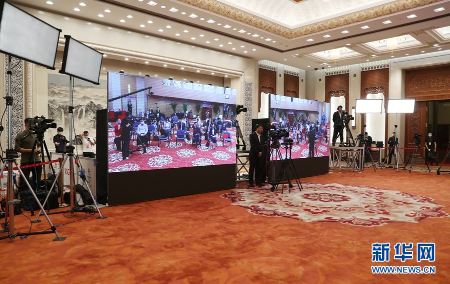 5月20日,全國(guó)政協(xié)十三屆三次會(huì)議新聞發(fā)布會(huì)在北京舉行,大會(huì)新聞發(fā)言人郭衛(wèi)民介紹本次大會(huì)有關(guān)情況并回答中外記者提問(wèn)。按照大會(huì)疫情防控工作要求,新聞發(fā)布會(huì)采用網(wǎng)絡(luò)視頻方式舉行。主會(huì)場(chǎng)設(shè)在人民大會(huì)堂新聞發(fā)布廳,分會(huì)場(chǎng)設(shè)在梅地亞中心多功能廳。圖為人民大會(huì)堂新聞發(fā)布廳現(xiàn)場(chǎng)。新華網(wǎng) 王翰林 攝