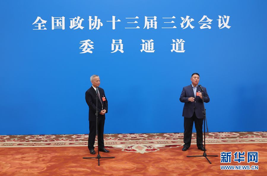 全國(guó)政協(xié)十三屆三次會(huì)議首場(chǎng)“委員通道”采訪活動(dòng)于5月21日在人民大會(huì)堂新聞發(fā)布廳舉行,邀請(qǐng)部分全國(guó)政協(xié)委員通過(guò)網(wǎng)絡(luò)視頻方式接受媒體采訪。圖為“委員通道”現(xiàn)場(chǎng)。新華網(wǎng) 王翰林 攝