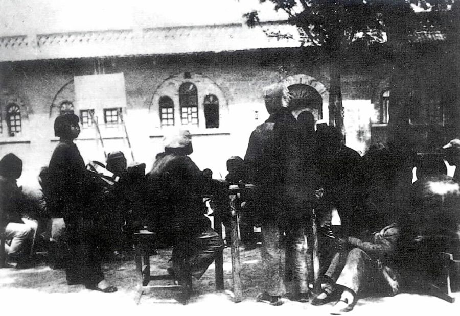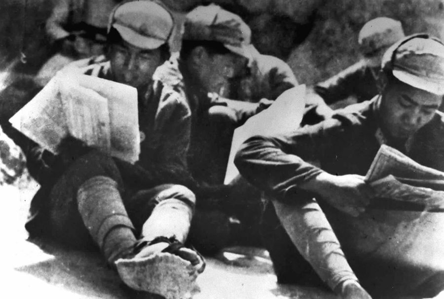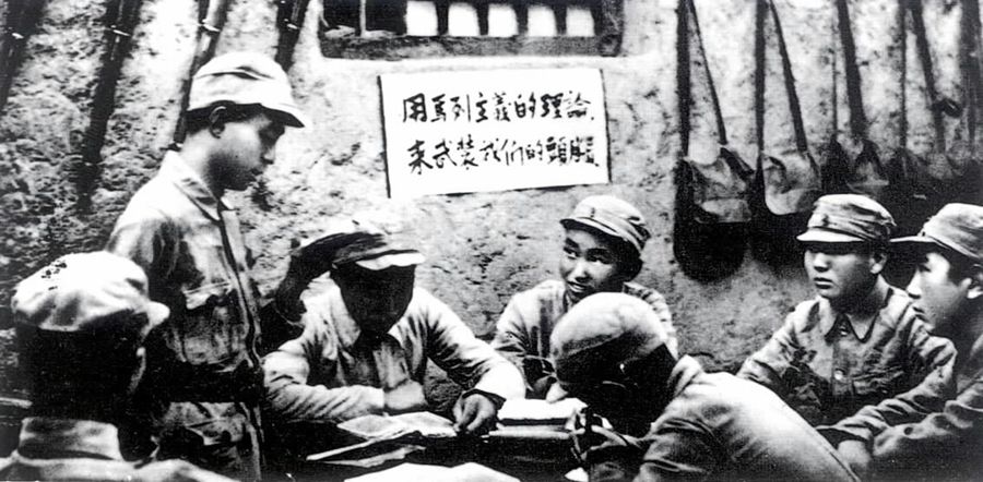 中國人民抗日軍政大學(xué)的學(xué)員在學(xué)習(xí)整風(fēng)文件。 新華社圖片