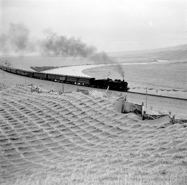 1958年8月1日,包蘭鐵路通車。這是列車通過沙坡頭。新華社圖片