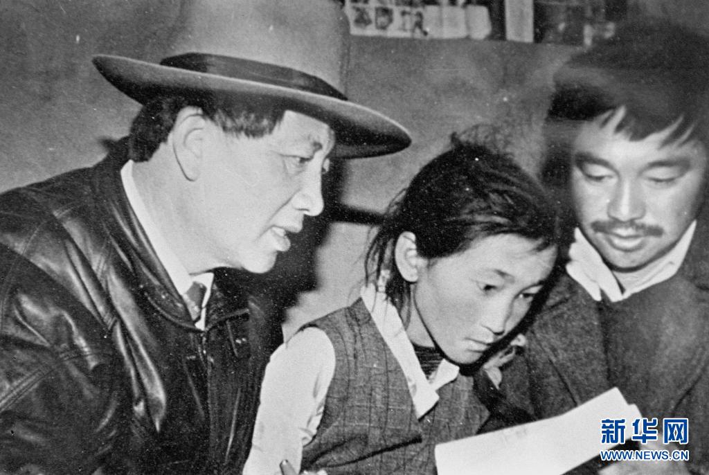 在西藏工作期間,孔繁森(左)在輔導(dǎo)藏族兒童讀書(資料照片)。新華社發(fā)