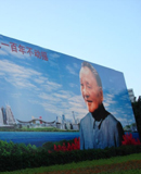 廣場一端的巨幅畫像上,改革開放的總設(shè)計師鄧小平身著淺灰色中山裝,堅(jiān)毅地凝視著前方。畫面左上方寫著:“堅(jiān)持黨的基本路線一百年不動搖?!?/a>