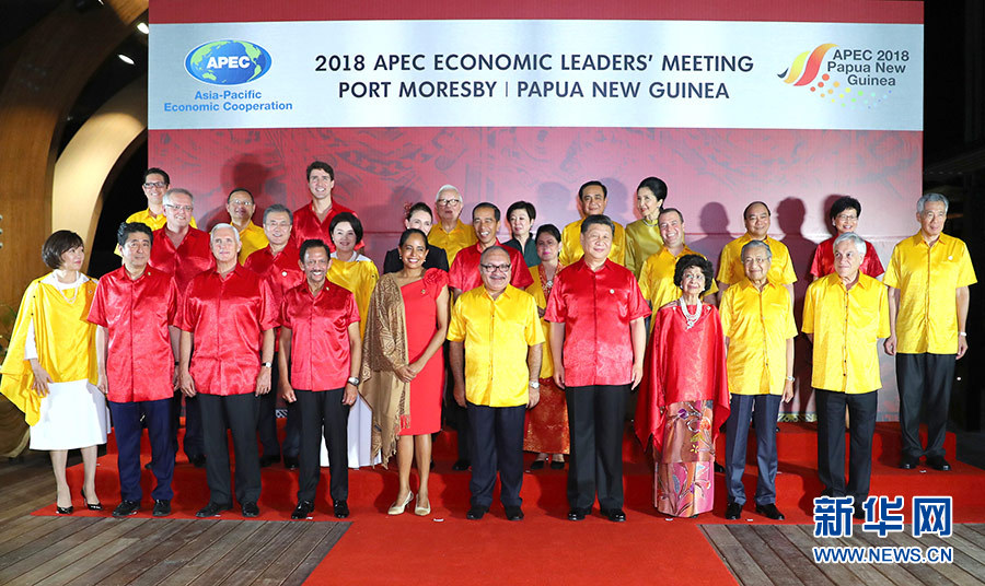 11月17日,國家主席習近平在莫爾茲比港出席巴布亞新幾內(nèi)亞總理奧尼爾和夫人為出席亞太經(jīng)合組織第二十六次領(lǐng)導(dǎo)人非正式會議的各成員經(jīng)濟體領(lǐng)導(dǎo)人、代表及配偶舉行的歡迎晚宴。這是晚宴前集體合影。 新華社記者 謝環(huán)馳 攝