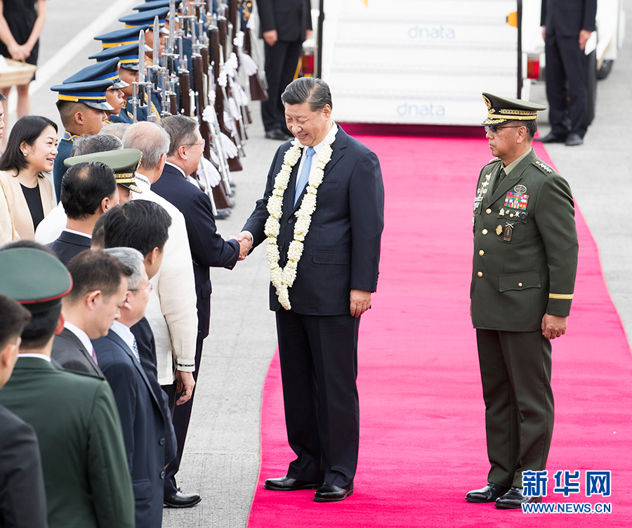 11月20日,國(guó)家主席習(xí)近平抵達(dá)馬尼拉,開(kāi)始對(duì)菲律賓共和國(guó)進(jìn)行國(guó)事訪問(wèn)。這是習(xí)近平在機(jī)場(chǎng)受到菲律賓政府高級(jí)官員熱情迎接。 新華社記者 黃敬文 攝