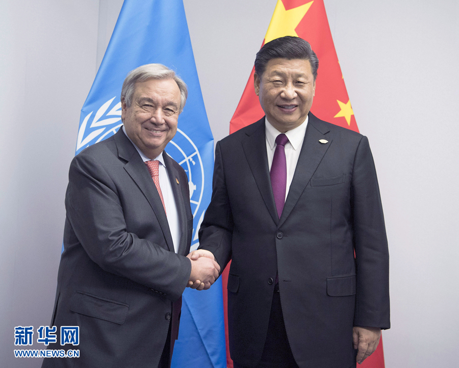 當(dāng)?shù)貢r間11月30日,國家主席習(xí)近平在布宜諾斯艾利斯會見聯(lián)合國秘書長古特雷斯。 新華社記者 李學(xué)仁 攝
