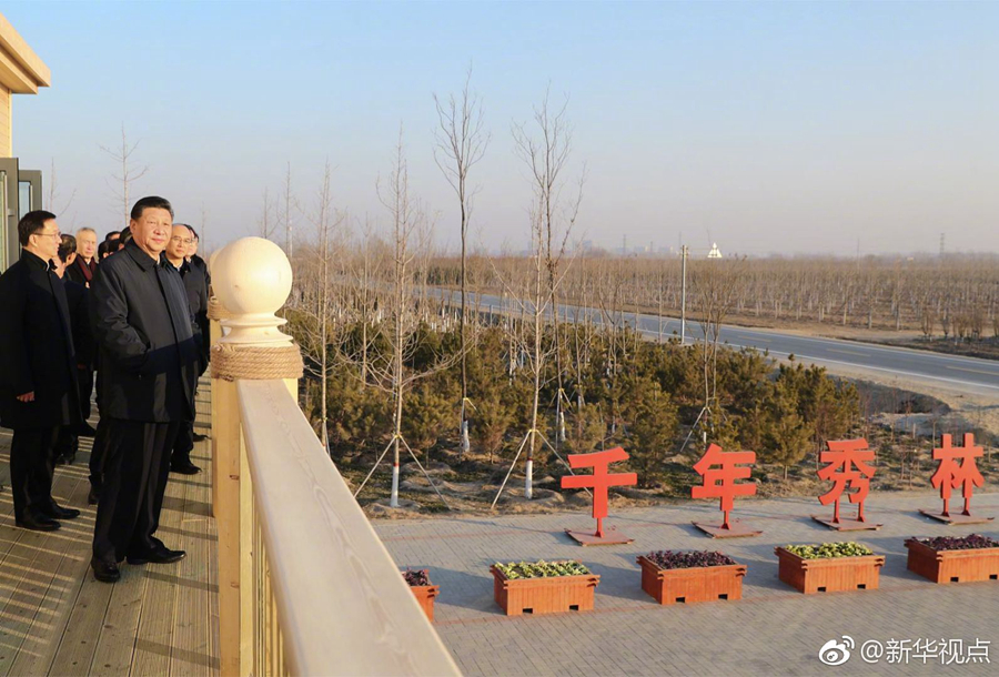 雄安新區(qū)堅持生態(tài)優(yōu)先、綠色發(fā)展,率先啟動生態(tài)基礎(chǔ)設(shè)施建設(shè)和環(huán)境整治,目前已完成11萬畝“千年秀林”建設(shè)。16日下午,習(xí)近平總書記來到“千年秀林”大清河片林一區(qū)造林區(qū)域,乘車穿行林區(qū)察看林木長勢,登上秀林驛站二層平臺遠(yuǎn)眺林區(qū)全貌,同當(dāng)?shù)刈o林員代表親切交流。他說,藍(lán)天、碧水、綠樹,藍(lán)綠交織,將來生活的最高標(biāo)準(zhǔn)就是生態(tài)好。雄安新區(qū)過去有一定的基礎(chǔ),現(xiàn)在搞“千年秀林”,將來這里一定是最宜居的地方。綠水青山就是金山銀山,雄安新區(qū)就要靠這樣的生態(tài)環(huán)境來體現(xiàn)價值、增加吸引力。(記者張曉松、謝環(huán)馳、鞠鵬)?