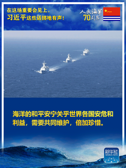 國家主席、中央軍委主席習(xí)近平23日上午在青島集體會(huì)見了應(yīng)邀出席中國人民解放軍海軍成立70周年多國海軍活動(dòng)的外方代表團(tuán)團(tuán)長,代表中國政府和軍隊(duì)向出席活動(dòng)的各國海軍官兵表示熱烈歡迎。