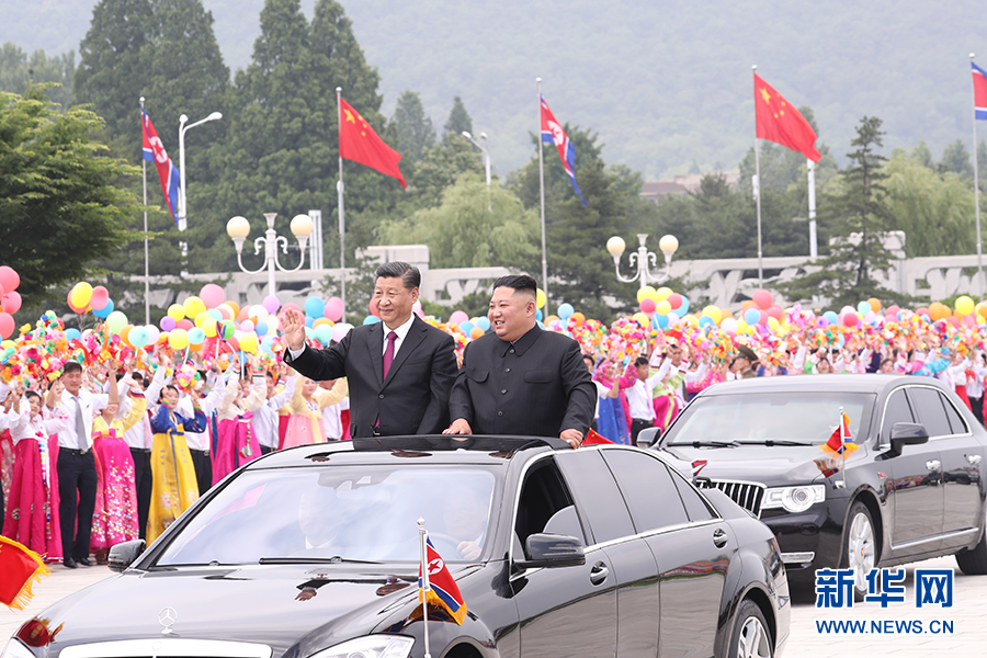 習(xí)近平抵達(dá)黎明大街路口,換乘敞篷車,與金正恩同車前往錦繡山太陽(yáng)宮廣場(chǎng)。街道兩旁,人山人海,盛況空前。歡迎民眾站在高坡上,從住宅樓的窗臺(tái)上,向中國(guó)貴賓歡呼致敬。到處都是熱情的笑臉,友好的歡呼聲不絕于耳。習(xí)近平和金正恩向歡迎的人群頻頻揮手致意。
