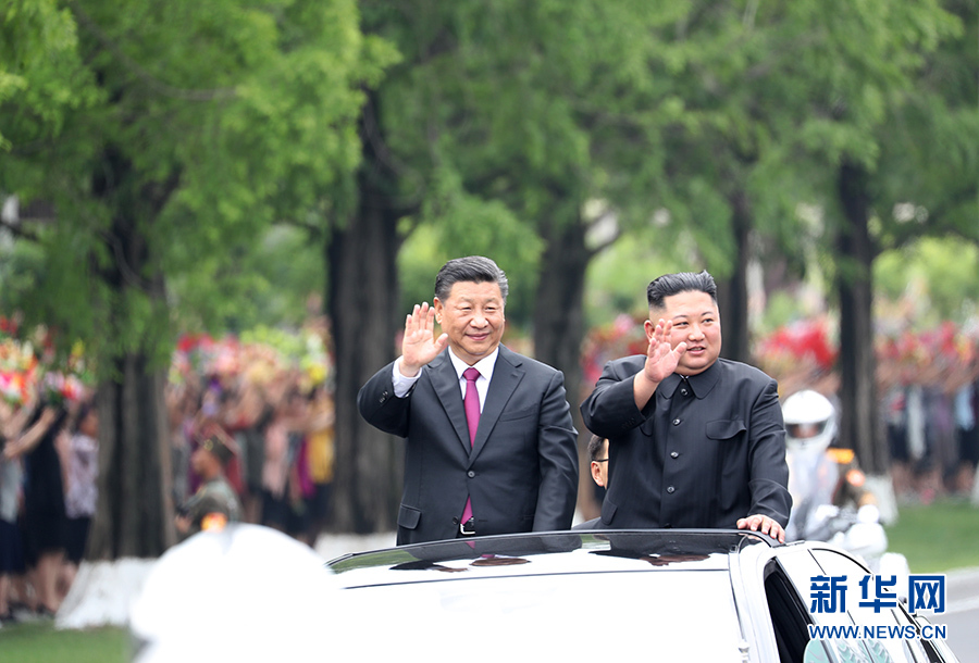 6月20日,中共中央總書記、國(guó)家主席習(xí)近平乘專機(jī)抵達(dá)平壤,開始對(duì)朝鮮民主主義人民共和國(guó)進(jìn)行國(guó)事訪問(wèn)。朝鮮勞動(dòng)黨委員長(zhǎng)、國(guó)務(wù)委員會(huì)委員長(zhǎng)金正恩和夫人李雪主到機(jī)場(chǎng)熱情迎接習(xí)近平和夫人彭麗媛。朝方在機(jī)場(chǎng)舉行隆重歡迎儀式。歡迎儀式結(jié)束后,習(xí)近平與金正恩同車前往錦繡山太陽(yáng)宮廣場(chǎng),沿途數(shù)十萬(wàn)群眾夾道歡迎。 新華社記者 申宏 攝