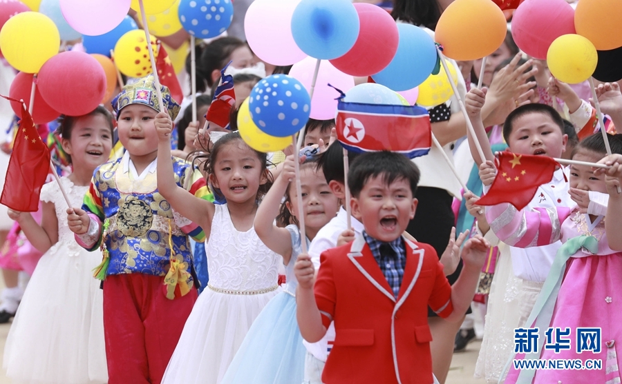 6月20日,中共中央總書記、國家主席習近平乘專機抵達平壤,開始對朝鮮民主主義人民共和國進行國事訪問。這是朝鮮兒童在平壤順安機場熱烈歡迎習近平。新華社記者 龐興雷 攝
