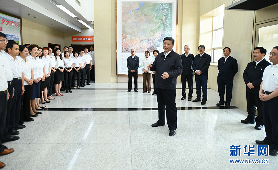 7月15日至16日,中共中央總書記、國(guó)家主席、中央軍委主席習(xí)近平在內(nèi)蒙古考察并指導(dǎo)開展“不忘初心、牢記使命”主題教育。這是16日,習(xí)近平在內(nèi)蒙古自治區(qū)自然資源廳調(diào)研指導(dǎo)開展“不忘初心、牢記使命”主題教育。 新華社記者 謝環(huán)馳 攝