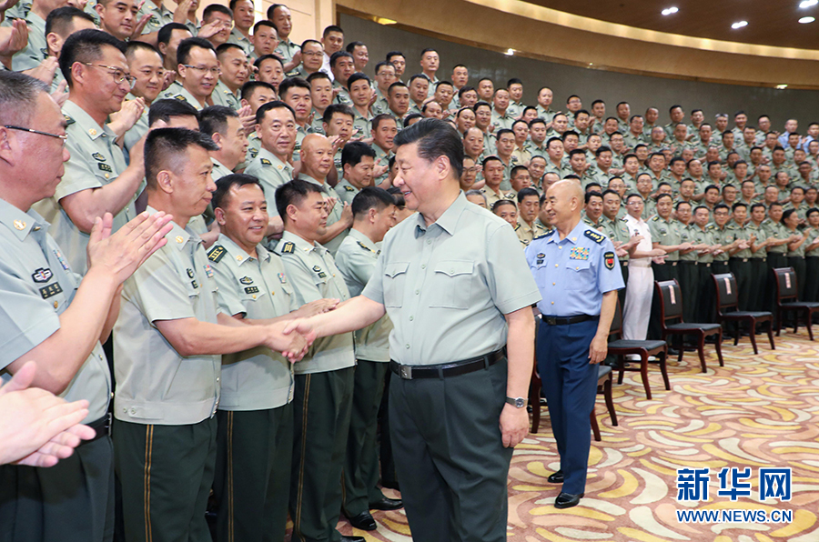 7月15日至16日,中共中央總書記、國(guó)家主席、中央軍委主席習(xí)近平在內(nèi)蒙古考察并指導(dǎo)開展“不忘初心、牢記使命”主題教育。這是16日上午,習(xí)近平在呼和浩特親切接見駐內(nèi)蒙古部隊(duì)副師職以上領(lǐng)導(dǎo)干部和團(tuán)級(jí)單位主官,代表黨中央和中央軍委向駐內(nèi)蒙古部隊(duì)全體官兵致以誠(chéng)摯問(wèn)候。 新華社記者 李剛 攝