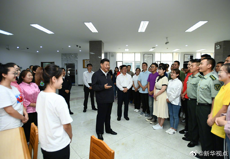 16日上午,正在內(nèi)蒙古考察調(diào)研的習(xí)近平總書記來到內(nèi)蒙古大學(xué),走進(jìn)圖書館同學(xué)生們親切交談。習(xí)近平指出,少年強(qiáng)則中國強(qiáng)??吹侥昵嗳私】德斆?、奮發(fā)向上,充滿正能量,心里十分高興。長江后浪推前浪,青出于藍(lán)而勝于藍(lán),未來是屬于年青人的。在中華民族偉大復(fù)興的進(jìn)程中,你們生逢其時,何其幸也。再過30年,到本世紀(jì)中葉實(shí)現(xiàn)第二個百年奮斗目標(biāo)的時候,你們正好是國家的骨干和棟梁。大家要志存高遠(yuǎn)、腳踏實(shí)地,學(xué)好知識,打好基礎(chǔ),增長才干,將來為中華民族偉大復(fù)興貢獻(xiàn)自己的智慧和力量。 (文字:張曉松、朱基釵 攝影:謝環(huán)馳、李學(xué)仁)