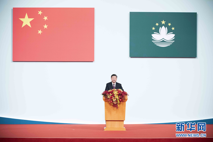 12月20日,慶祝澳門(mén)回歸祖國(guó)20周年大會(huì)暨澳門(mén)特別行政區(qū)第五屆政府就職典禮在澳門(mén)東亞運(yùn)動(dòng)會(huì)體育館隆重舉行。中共中央總書(shū)記、國(guó)家主席、中央軍委主席習(xí)近平出席并發(fā)表重要講話(huà)。 新華社記者 李濤 攝