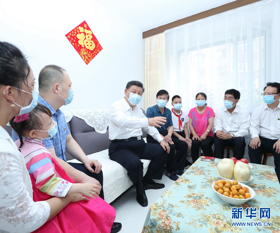 7月22日至24日,中共中央總書記、國家主席、中央軍委主席習(xí)近平在吉林省考察。這是7月23日下午,習(xí)近平在長春市寬城區(qū)團山街道長山花園社區(qū),同居民趙興福一家嘮家常。 新華社記者 鞠鵬 攝