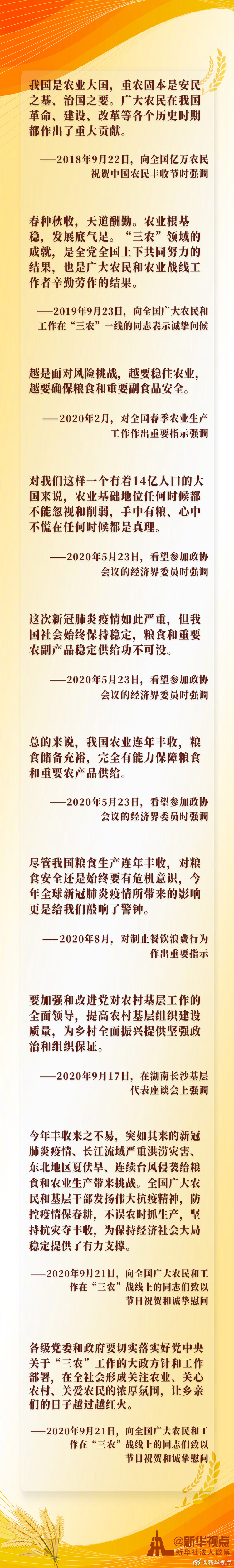 春種秋收,天道酬勤。今天是第三個(gè)中國(guó)農(nóng)民豐收節(jié),一起重溫習(xí)近平總書(shū)記關(guān)注農(nóng)業(yè),關(guān)心農(nóng)村,關(guān)愛(ài)農(nóng)民的金句。