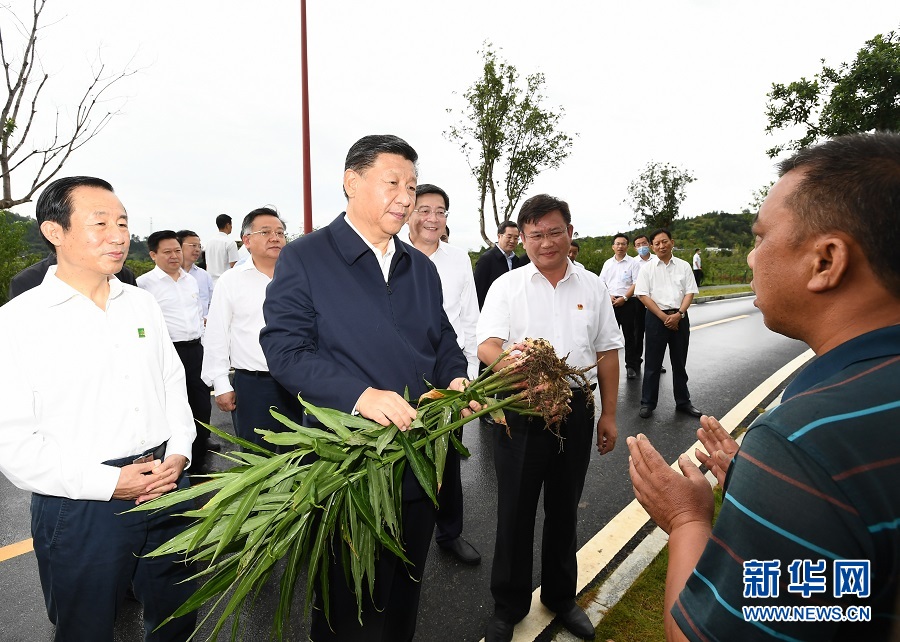 2020年9月16日至18日,習近平在湖南考察。這是16日下午,習近平在郴州市汝城縣文明瑤族鄉(xiāng)沙洲瑤族村沙洲現(xiàn)代農旅示范基地,了解扶貧產業(yè)發(fā)展和增收情況。新華社記者 謝環(huán)馳 攝
