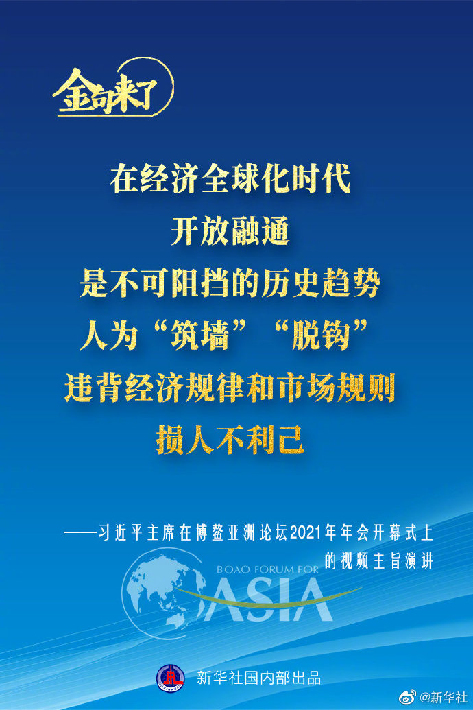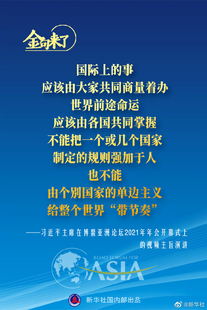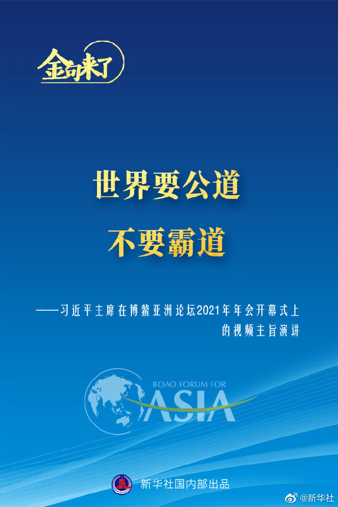4月20日,習(xí)近平主席在博鰲亞洲論壇2021年年會開幕式上以視頻方式發(fā)表主旨演講。一起來看演講金句!?