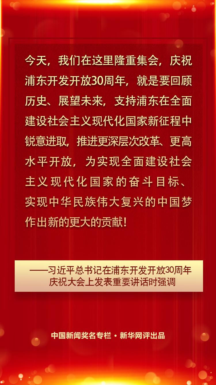 11月12日,浦東開發(fā)開放30周年慶祝大會在上海市舉行。習(xí)近平總書記在會上發(fā)表重要講話,充分肯定浦東開發(fā)開放30年取得的顯著成就,對浦東推進(jìn)更深層次改革、更高水平開放提出新要求、作出新部署。