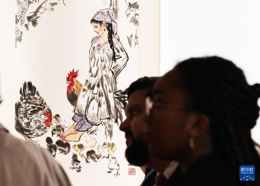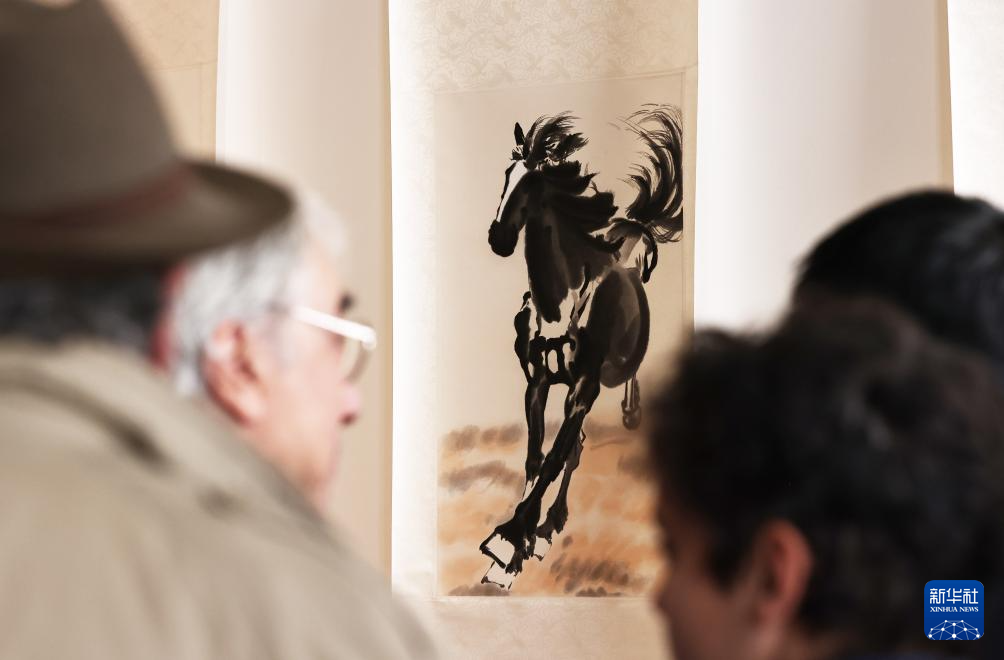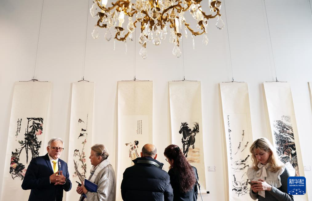 12月20日,在法国巴黎中国文化中心,嘉宾在“心境映象——荣宝斋当代艺术展暨木版水印特展”上参观。