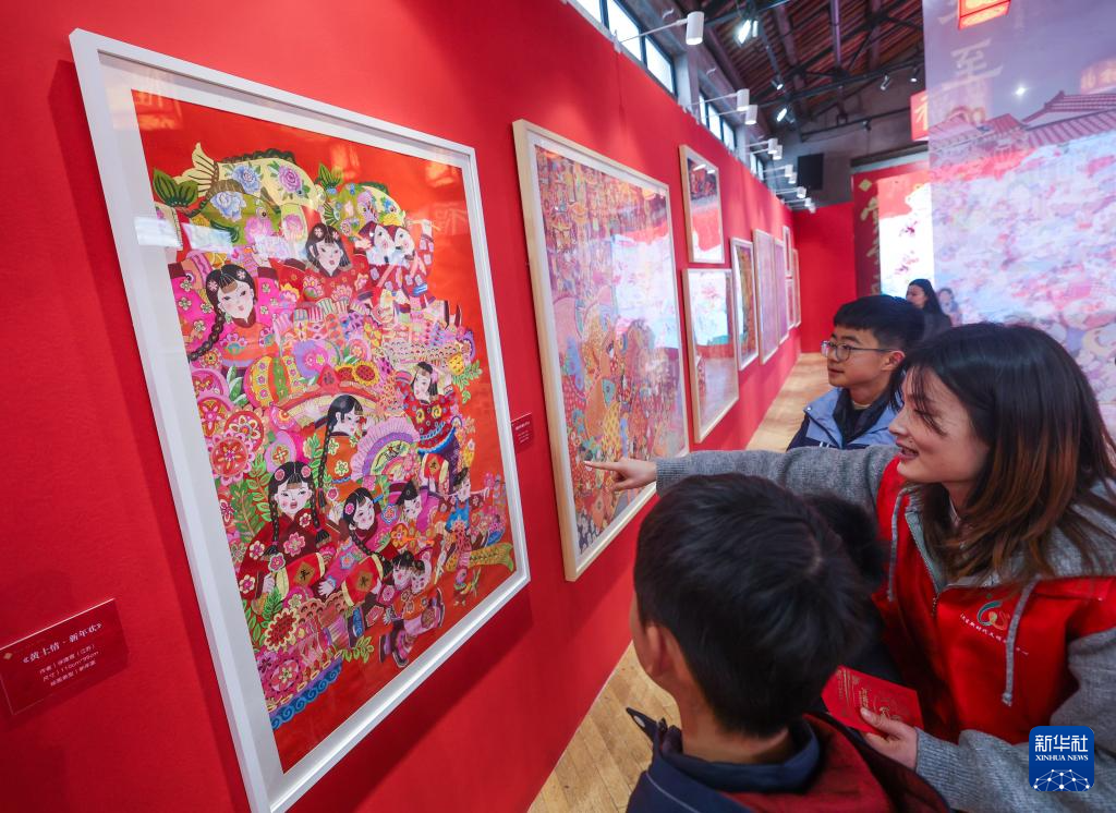 1月23日,当地市民在湖州吴兴的小西街朝阳里堂观赏年画作品。