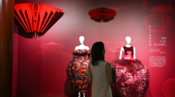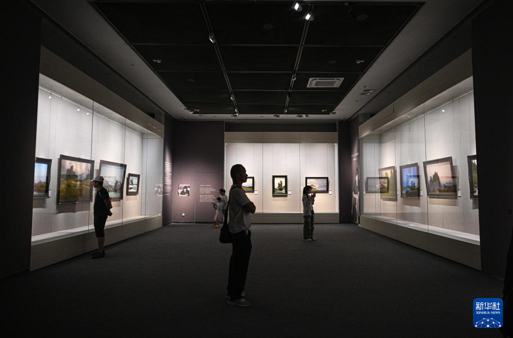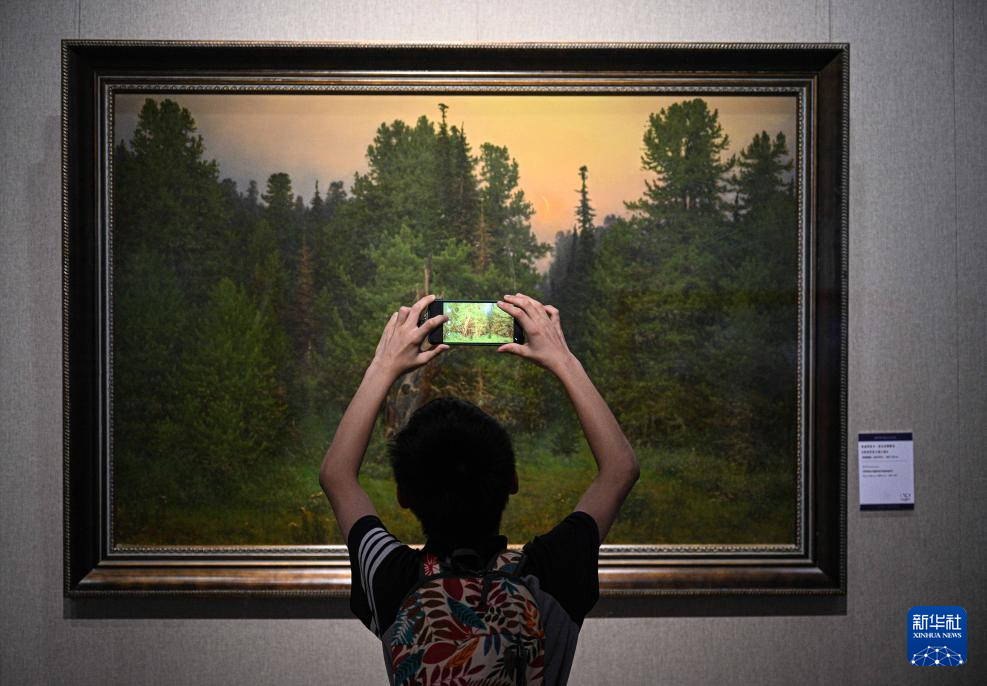 8月13日,观众在位于海口的海南省博物馆观看“俄罗斯当代艺术大师经典作品展”。