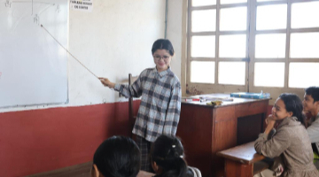 8月18日,福建泉州蟳埔村,一名体验“簪花围”的小游客在拍照留念。