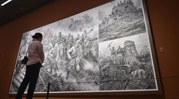 9月7日,在中国国家博物馆,一名媒体人员在参观展览。