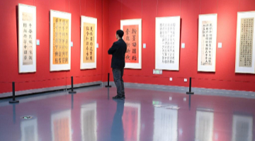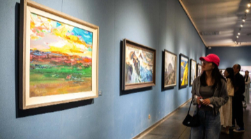 9月26日,在加拿大温哥华2025年度室内设计展上,一名女子参观木质结构室内设计作品。