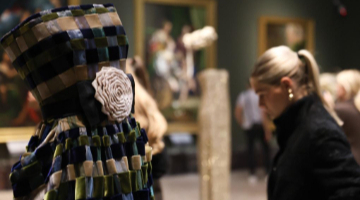 9月26日,在加拿大温哥华2025年度室内设计展上,一名女子观看家具展品。