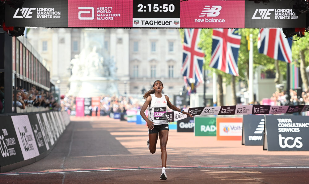 新华社伦敦4月27日电(记者张薇)埃塞俄比亚女将阿塞法27日在伦敦马拉松赛上夺金,同时以2小时15分50秒的成绩刷新纯女子世界纪录。