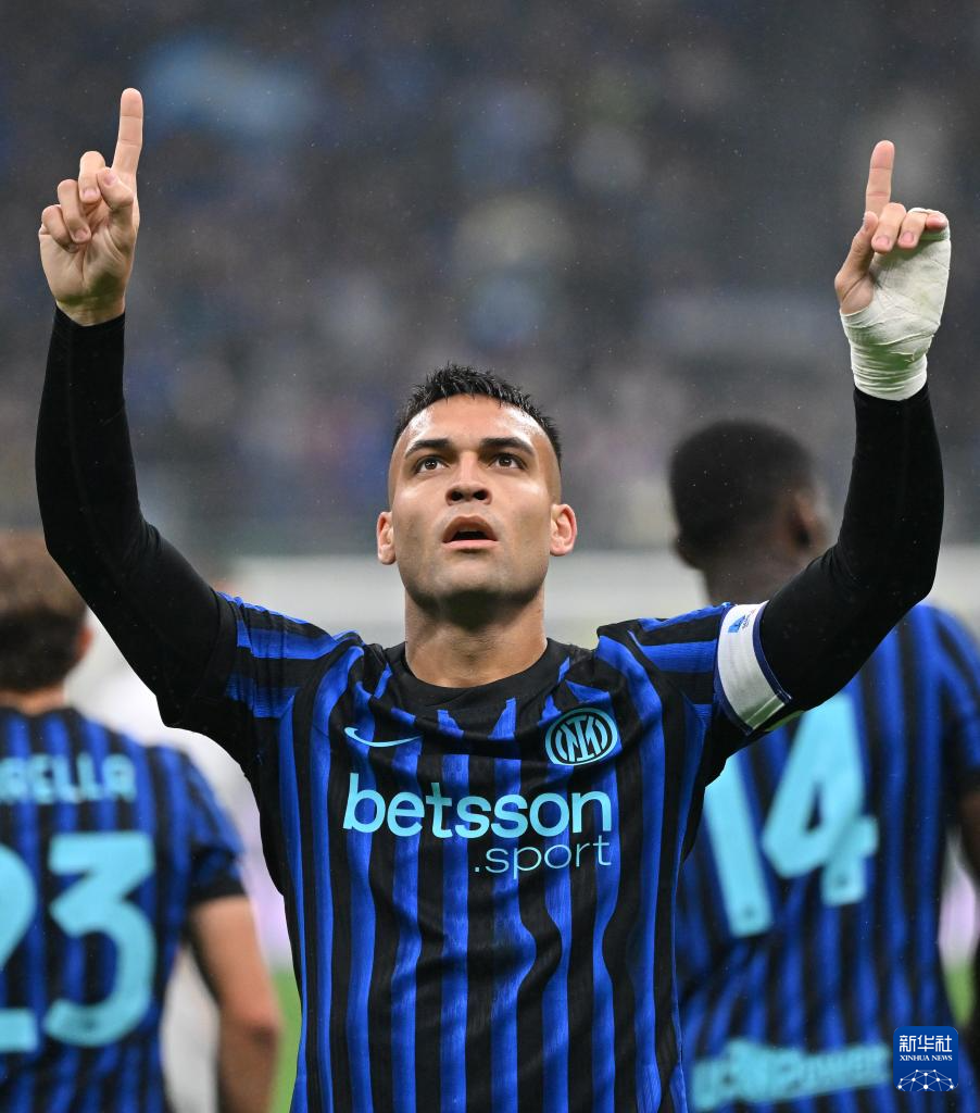 10月4日,国际米兰队球员劳塔罗·马丁内斯庆祝进球。