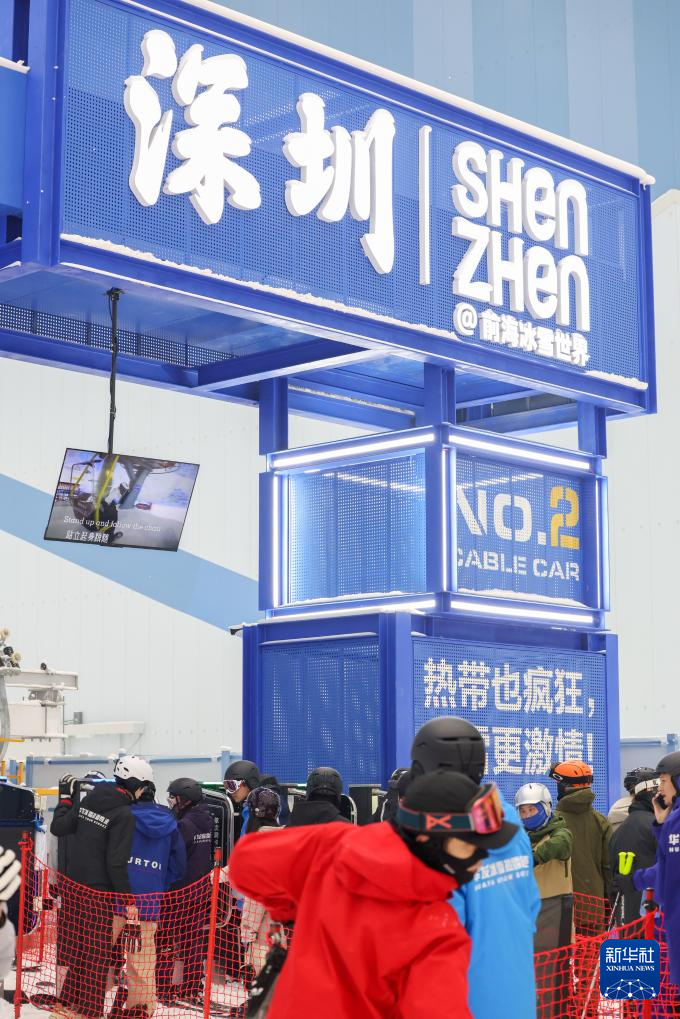 10月7日,滑雪爱好者在深圳·前海冰雪世界乘坐缆车。