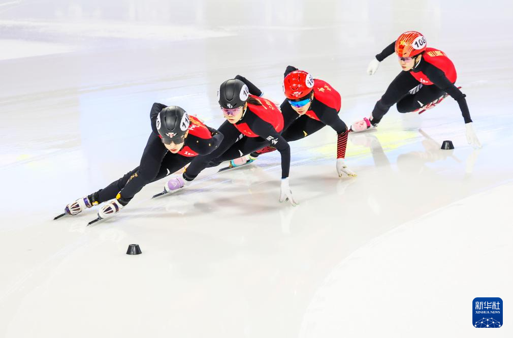 10月11日,黑龙江省冰上训练中心选手张延(右二)在甲组女子1000米决赛中。最终,她获得冠军。