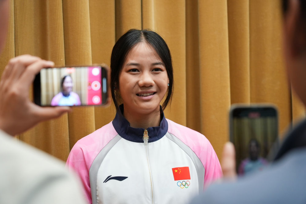 10月13日,田径运动员张可依在大会后接受采访。当日,第三届亚洲青年运动会中国体育代表团成立动员大会在北京举行,本届运动会将于10月22日至31日在巴林举办。新华社记者 胡星宇 摄