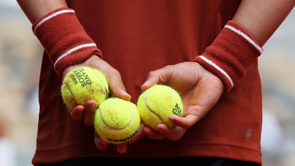 法网赛场的球童在场边备球。新华社记者 高静 摄