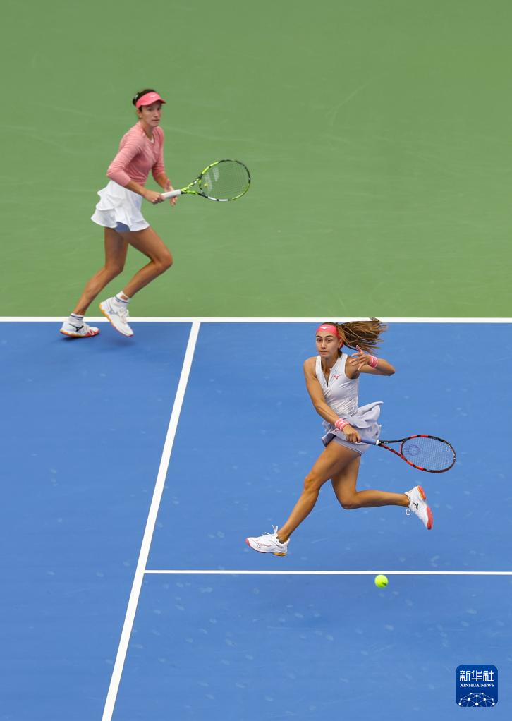 10月12日,亨特/斯尼亚科娃(右)在比赛中。