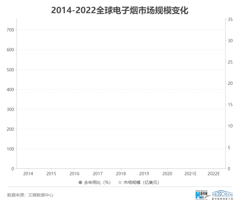 ??? 近幾年,全球電子煙行業(yè)發(fā)展迅速。國際市場(chǎng)研究中心Euromonitor International報(bào)告顯示,2011年到2018年的七年間,全球電子煙使用人數(shù)整整增漲了6倍。艾媒咨詢(iiMedia Research)數(shù)據(jù)顯示,2020年全球電子煙行業(yè)的市場(chǎng)銷售額達(dá)到424億美元,同比增長15.6%。